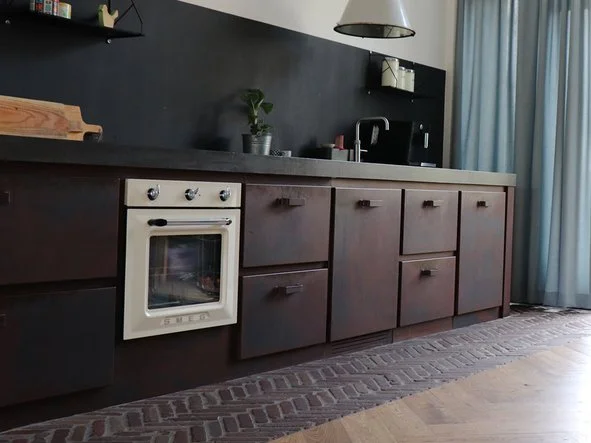Het meest opvallende deel van deze keuken is het gebruik van verroest staal. Deze roest keuken heeft een stoere en robuuste uitstraling die perfect past in de moderne omgeving van Amersfoort. De verroeste afwerking geeft de keuken een echt industrieel karakter. Het verweerde uiterlijk van het staal creëert een unieke sfeer en voegt een vleugje authenticiteit toe aan de keukenruimte.